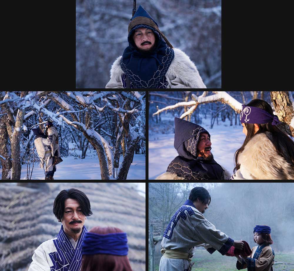 また、大自然で生き抜くため、狩猟の技術やアイヌの知恵を教えていたウイルクのアシㇼパとの思い出シーンやアイヌの占い師・インカㇻマッの幼少期とウイルクとの切ない回想シーンなど、場面写真も合わせて公開!